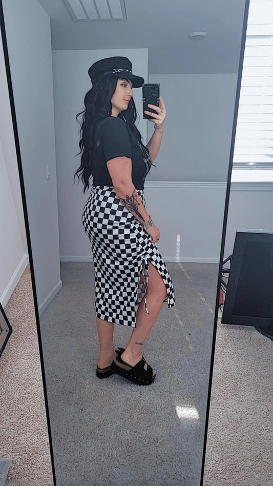 Checkered Split Skirt