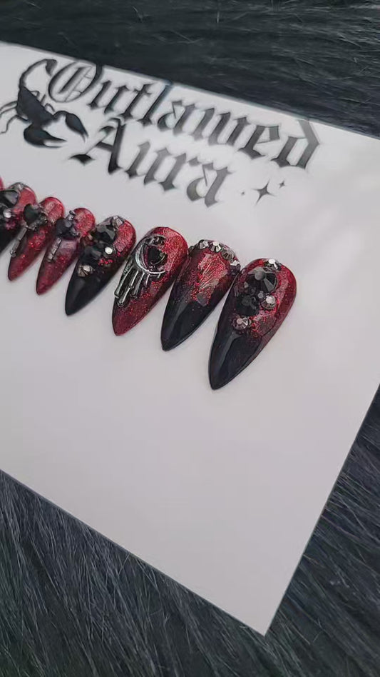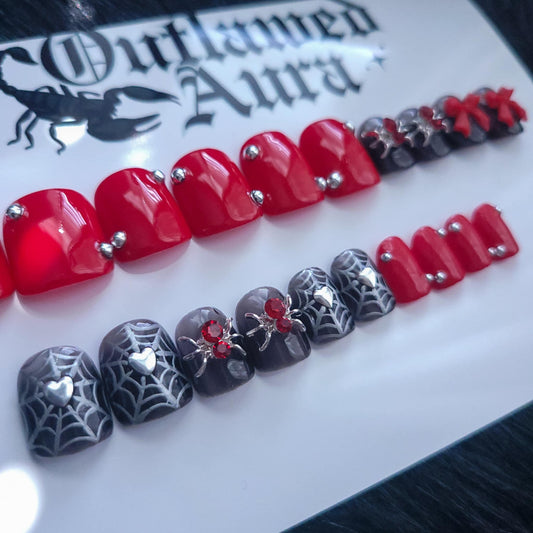 Black, Red, Silver Spiders, Halloween Nails, Spooky Nails